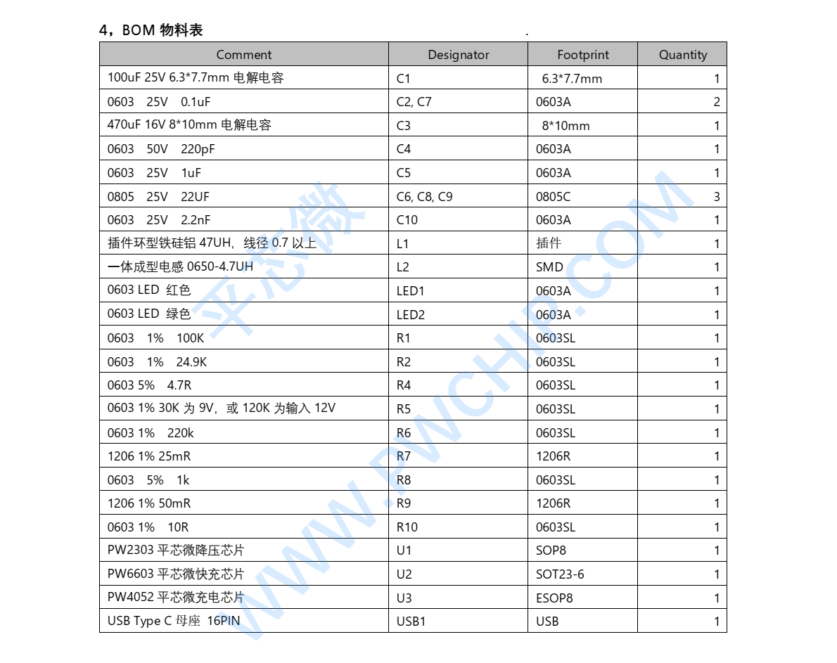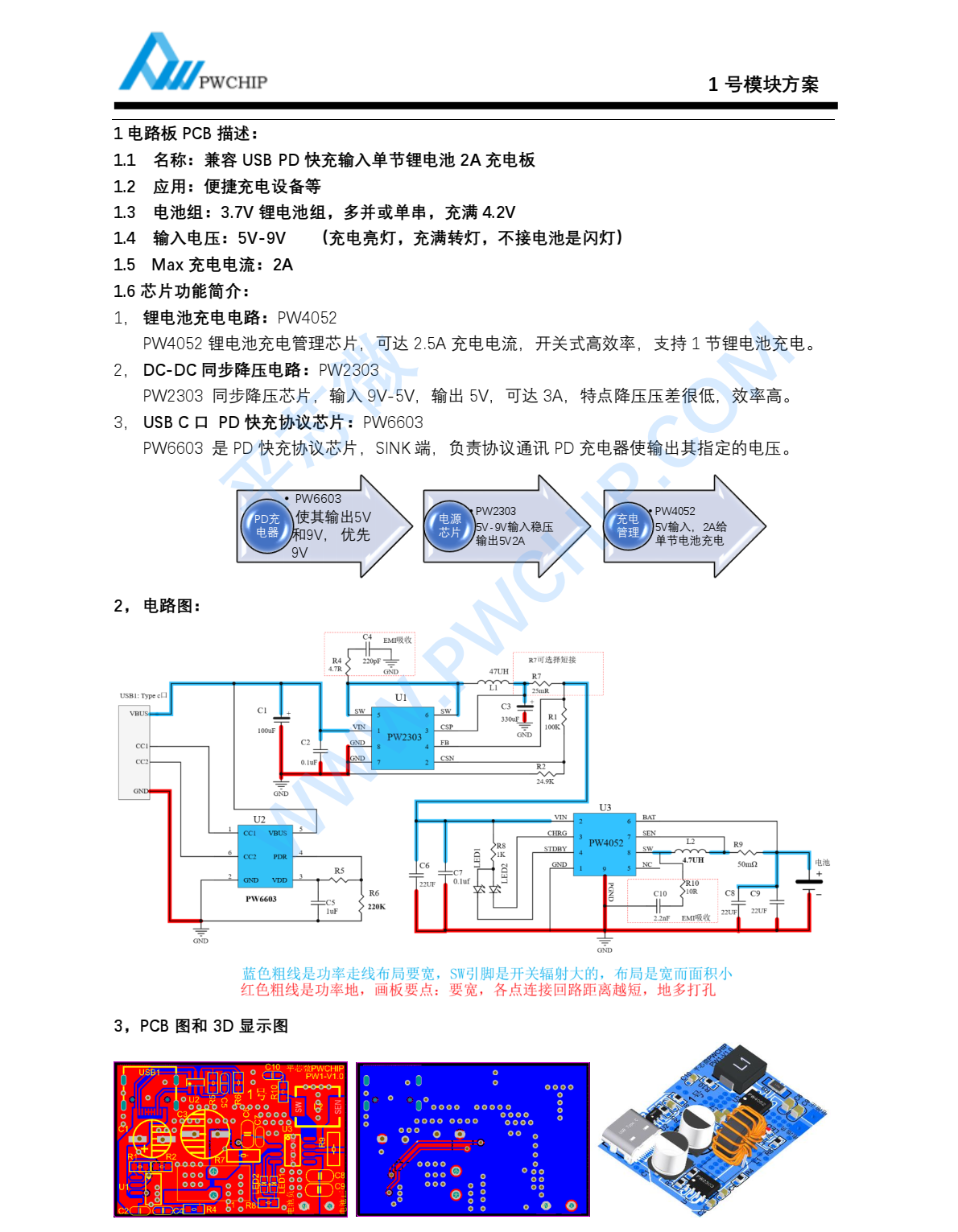 :1 电路板 PCB 描述:1.1 名称: 兼容 USB PD 快充输入单节锂电池 2A 充电板1.2 应用:便捷充电设备等1.3 电池组: 3.7V 锂电池组, 多并或单串,充满 4.2V1.4 输入电压: 5V-9V (充电亮灯,充满转灯,不接电池是闪灯)1.5 Max 充电电流: 2A