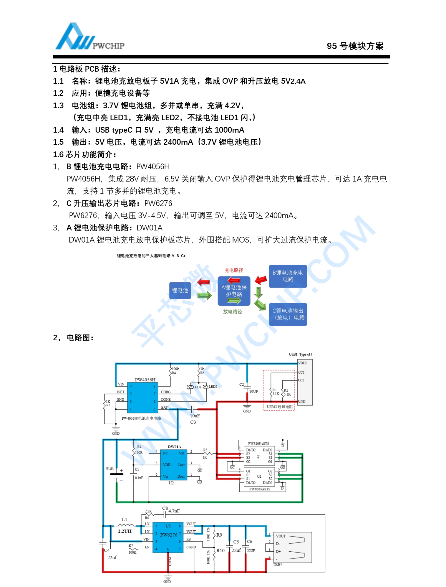锂电池充放电板子 5V1A 充电, 集成 OVP 和升压放电 5V2.4A,PW4056H,PW6276,DW01A
