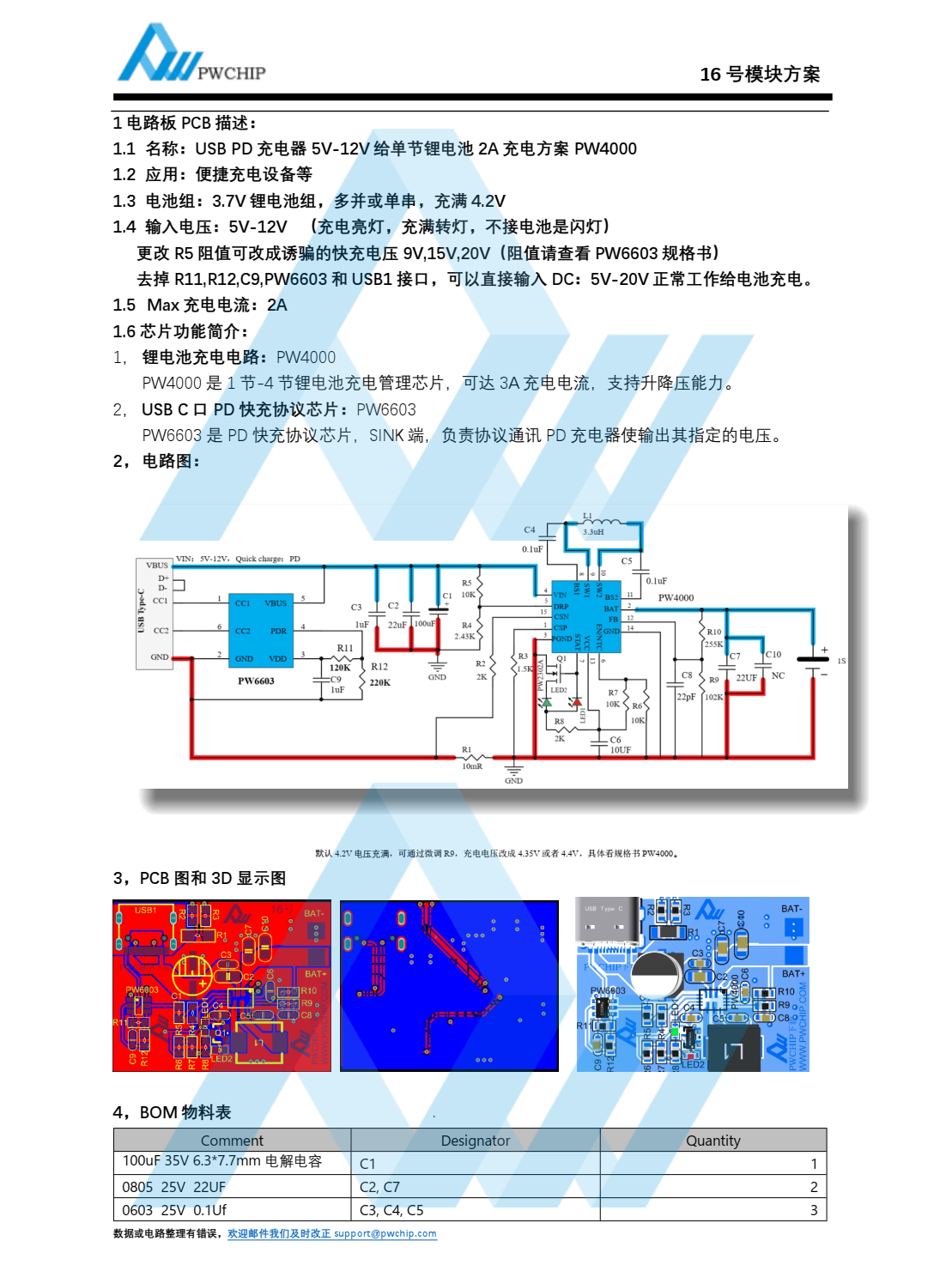 USB PD 充电器 5V-12V 给单节锂电池 2A 充电方案 PW4000-16号