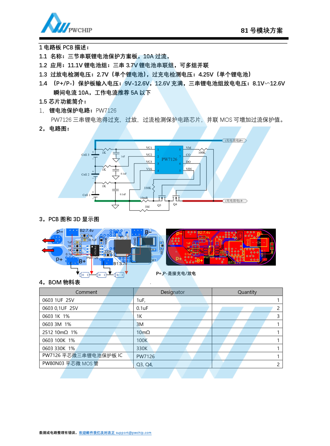 三节串联锂电池保护方案板, 10A 过流-81号
