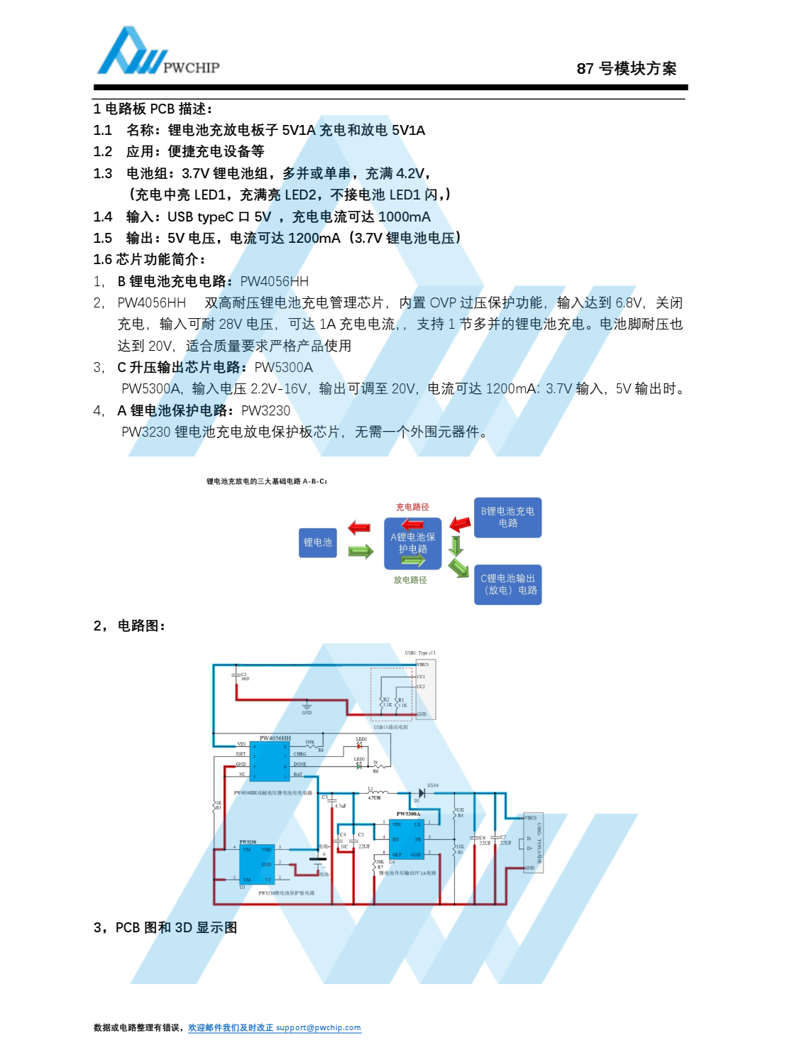 :1 电路板 PCB 描述:1.1 名称: 锂电池充放电板子 5V1A 充电和放电 5V1A1.2 应用:便捷充电设备等1.3 电池组: 3.7V 锂电池组,多并或单串, 充满 4.2V,(充电中亮 LED1,充满亮 LED2, 不接电池 LED1 闪, )1.4 输入: USB typeC 口 5V ,充电电流可达 1000mA1.5 输出: 5V 电压, 电流可达 1200mA(3.7V 锂电池电压)