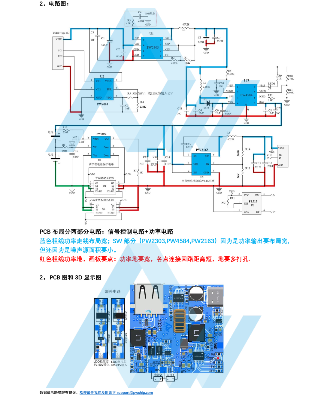 :1 电路板 PCB 描述:1.1 名称:两节串联锂电池充放电板,5V2A 输出,输入 PD 快充 5V-20V1.2 应用:便捷充电设备等1.3 电池组: 7.4V 锂电池组,两串多并, 充满 8.4V1.4 输入(USB1): 5-12V(充电亮灯,充满灭灯,无电池闪灯) ,1.5 输出(USB2): 5V2.4A (最大 3A)