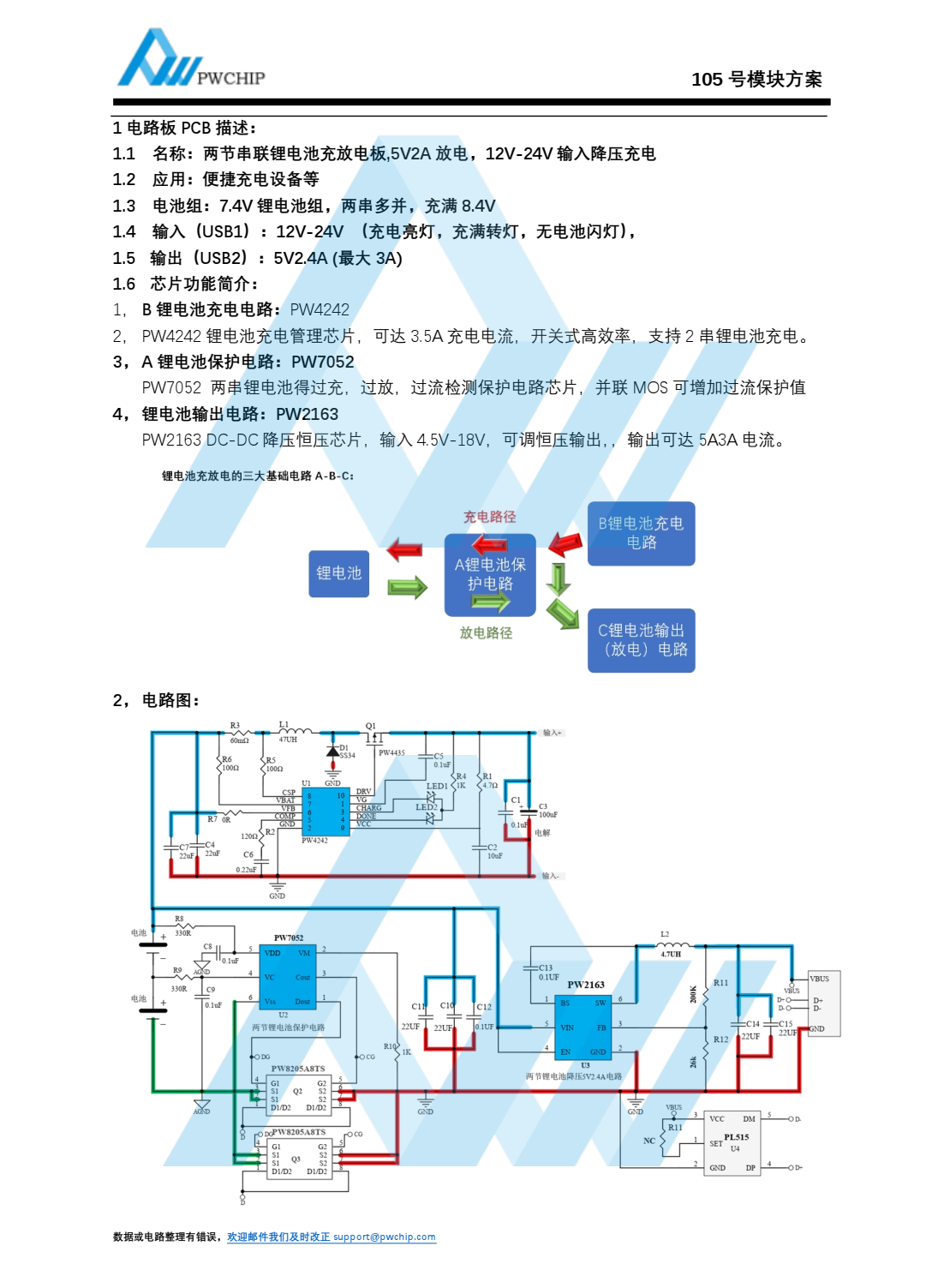 :1 电路板 PCB 描述:1.1 名称:两节串联锂电池充放电板,5V2A 放电, 12V-24V 输入降压充电1.2 应用:便捷充电设备等1.3 电池组: 7.4V 锂电池组,两串多并, 充满 8.4V1.4 输入(USB1): 12V-24V (充电亮灯,充满转灯,无电池闪灯) ,1.5 输出(USB2): 5V2.4A (最大 3A)