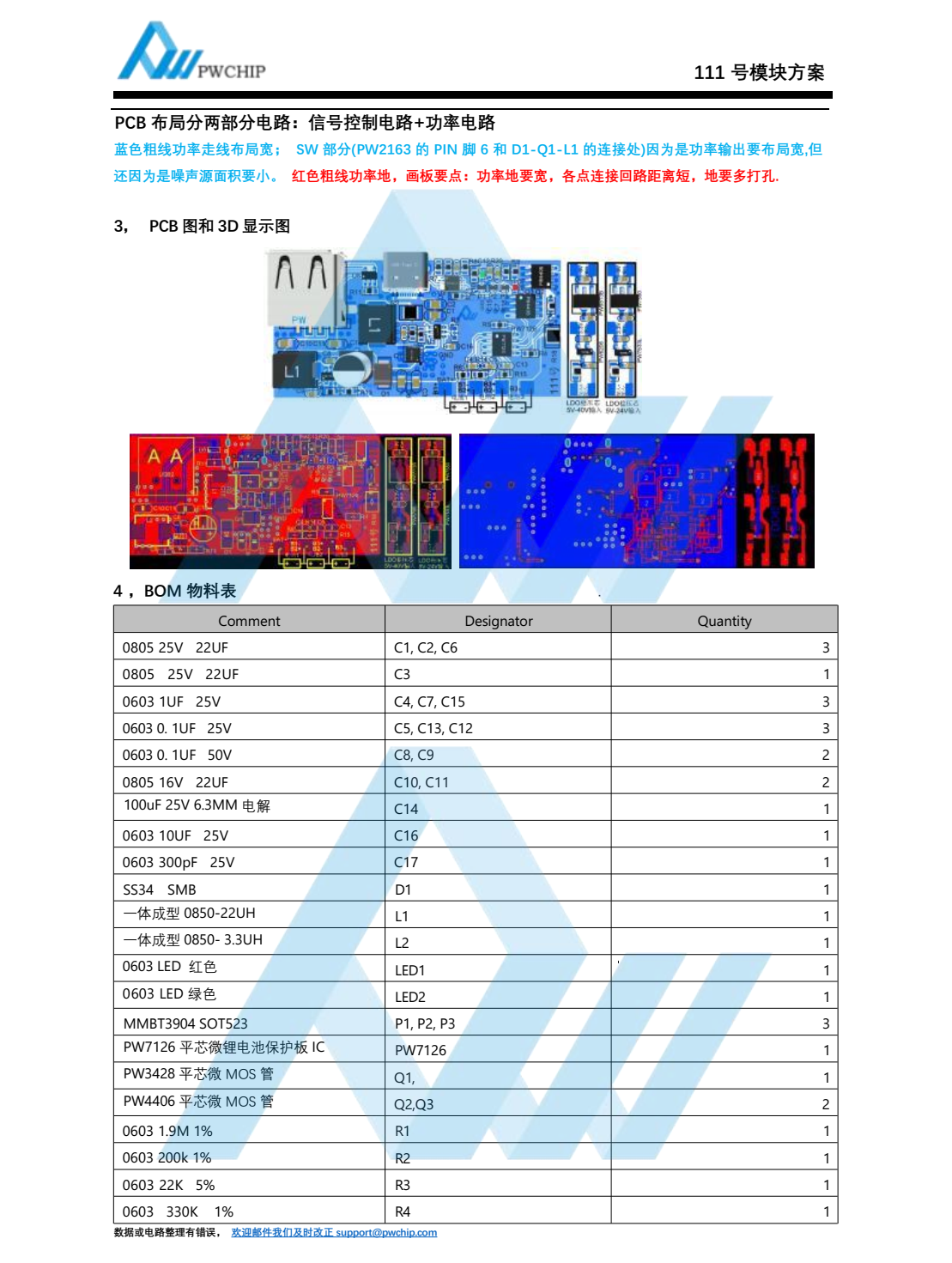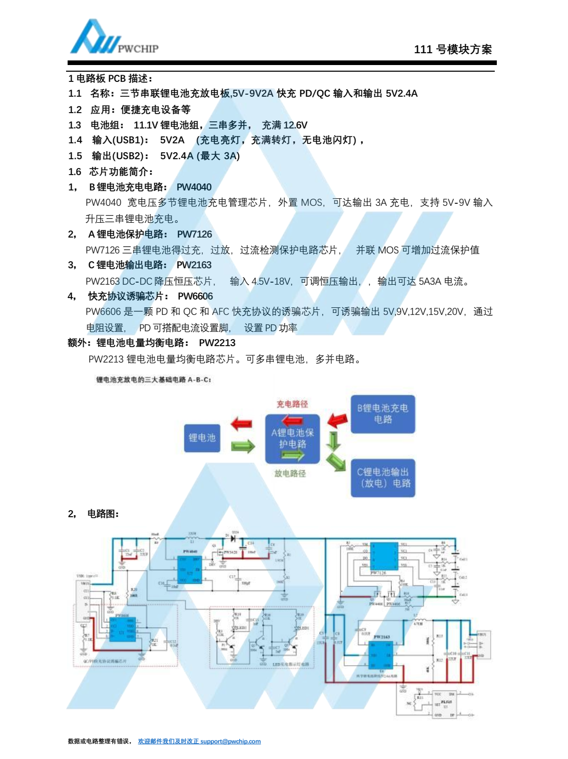 :1 电路板 PCB 描述:1.1 名称:三节串联锂电池充放电板,5V-9V2A 快充 PD/QC 输入和输出 5V2.4A1.2 应用:便捷充电设备等1.3 电池组: 11.1V 锂电池组,三串多并, 充满 12.6V1.4 输入(USB1): 5V2A (充电亮灯,充满转灯,无电池闪灯) ,1.5 输出(USB2): 5V2.4A (最大 3A)