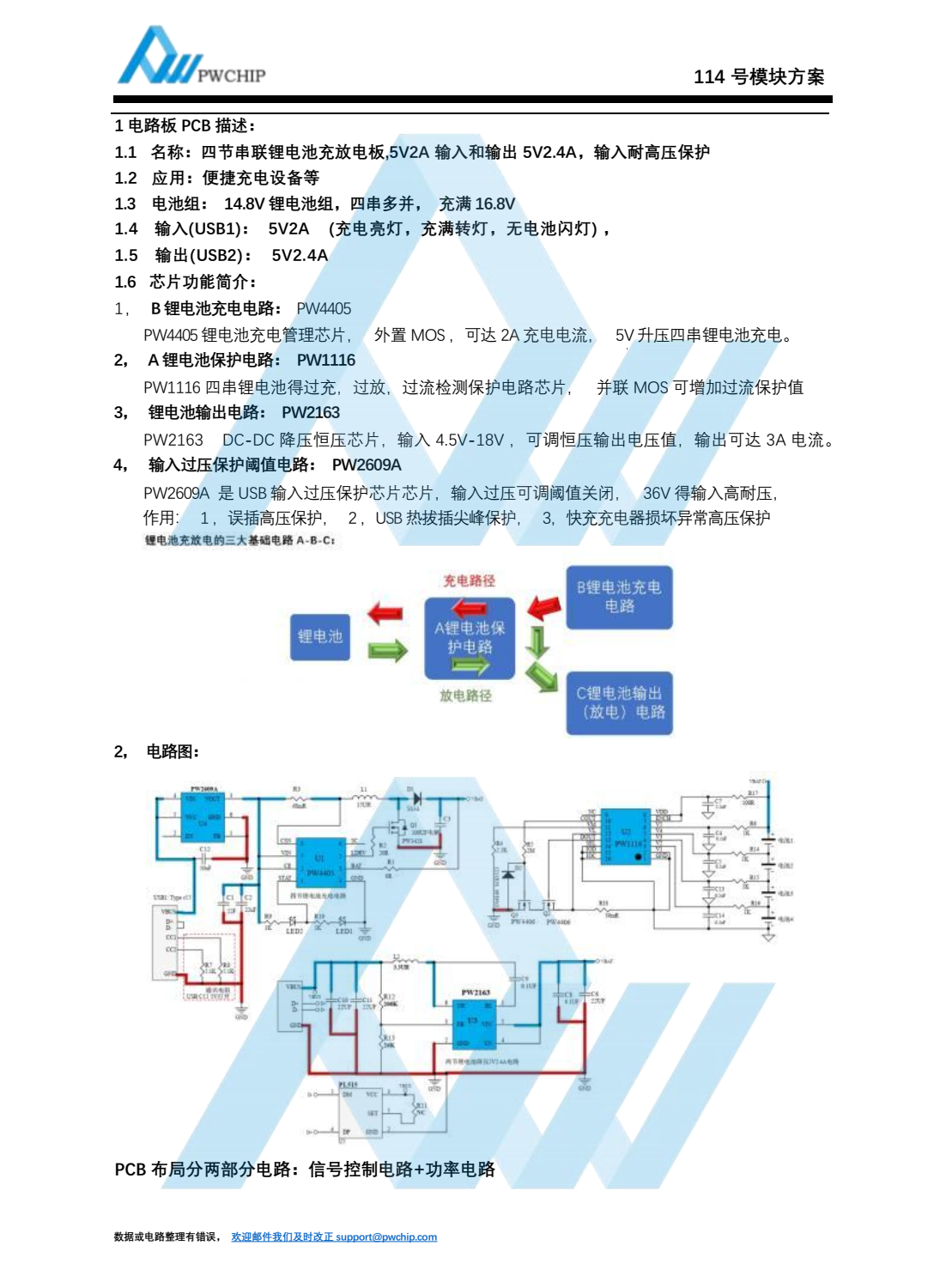 :1 电路板 PCB 描述:1.1 名称:四节串联锂电池充放电板,5V2A 输入和输出 5V2.4A,输入耐高压保护1.2 应用:便捷充电设备等1.3 电池组: 14.8V 锂电池组,四串多并, 充满 16.8V1.4 输入(USB1): 5V2A (充电亮灯,充满转灯,无电池闪灯) ,1.5 输出(USB2): 5V2.4A