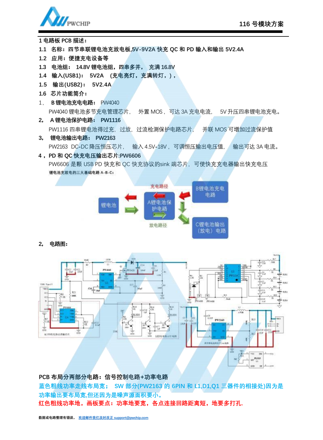 :1 电路板 PCB 描述:1.1 名称:四节串联锂电池充放电板,5V-9V2A 快充 QC 和 PD 输入和输出 5V2.4A1.2 应用:便捷充电设备等1.3 电池组: 14.8V 锂电池组,四串多并, 充满 16.8V1.4 输入(USB1): 5V2A (充电亮灯,充满转灯, ) ,1.5 输出(USB2): 5V2.4A