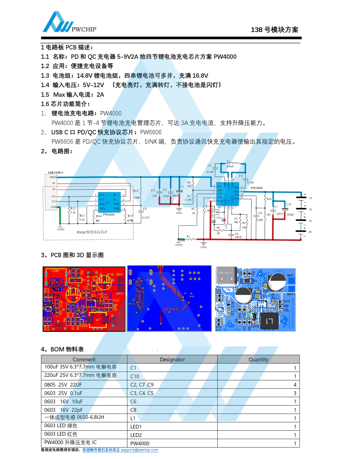 PD 和 QC 充电器 5-9V2A 给四节锂电池充电芯片方案 PW4000-138号
