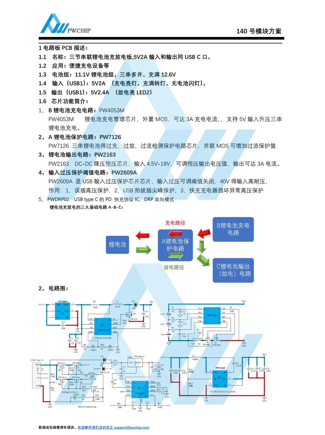 :1 电路板 PCB 描述:1.1 名称:三节串联锂电池充放电板,5V2A 输入和输出同 USB C 口,1.2 应用:便捷充电设备等1.3 电池组: 11.1V 锂电池组,三串多并, 充满 12.6V1.4 输入(USB1): 5V2A (充电亮灯,充满转灯,无电池闪灯) ,1.5 输出(USB1): 5V2.4A (放电亮 LED2)