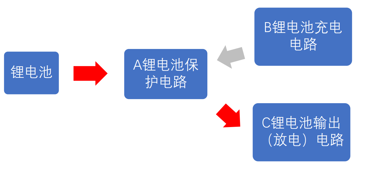 第二种: A 锂电池充电电路正常充电, C 锂电池输出电路也在输出时, 也就是边充边放。