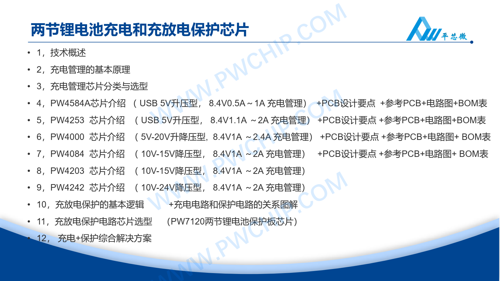 充电管理芯片分类与选型4,PW4584A芯片介绍 ( USB 5V升压型, 8.4V0.5A~1A 充电管理) +PCB设计要点 +参考PCB+电路图+BOM表5,PW4253 芯片介绍 ( USB 5V升压型, 8.4V1...