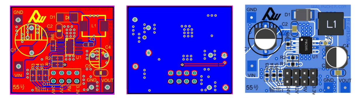 Note 2: The red thick line is the power ground, the main points ofthe drawing board: to be wide, the shorter the distance between the connecting loops .