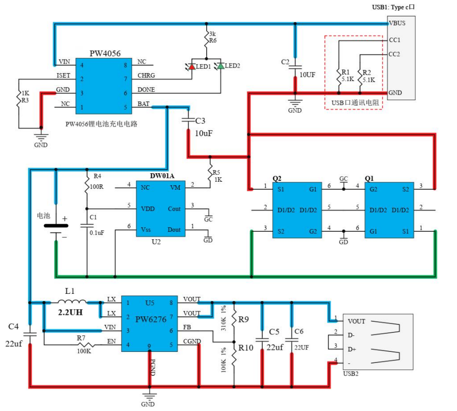 PW4056 is a Lithium battery charge management chip, Up to 1A chargingcurrent, support 1 multi-parallel lithium battery charging.