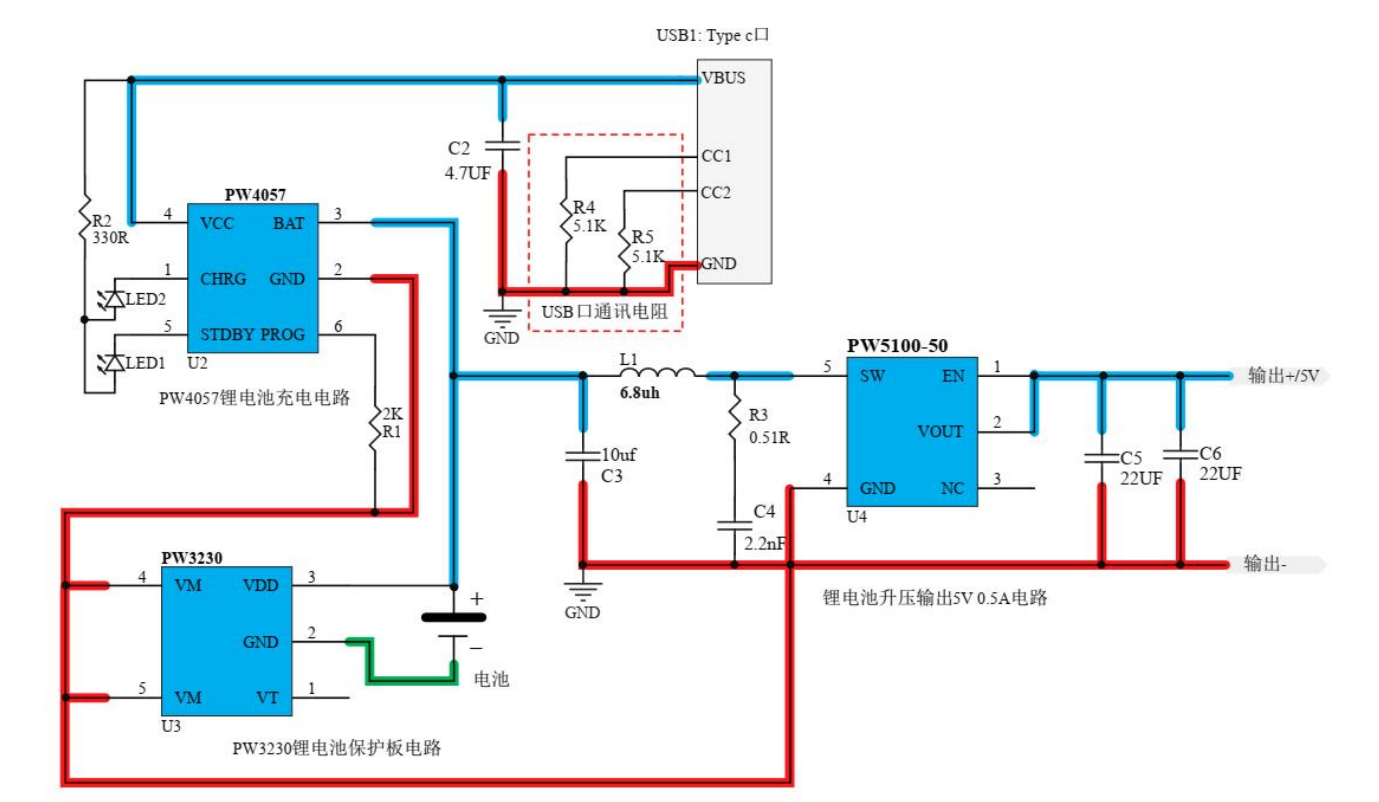 PW4057 is a single lithium battery charging management chip, integrated OVP overvoltageprotection, input voltage withstand 28V, up to 0.5A charging current