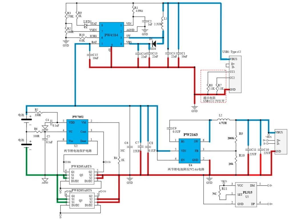 1, B lithium battery charging circuit:PW4584