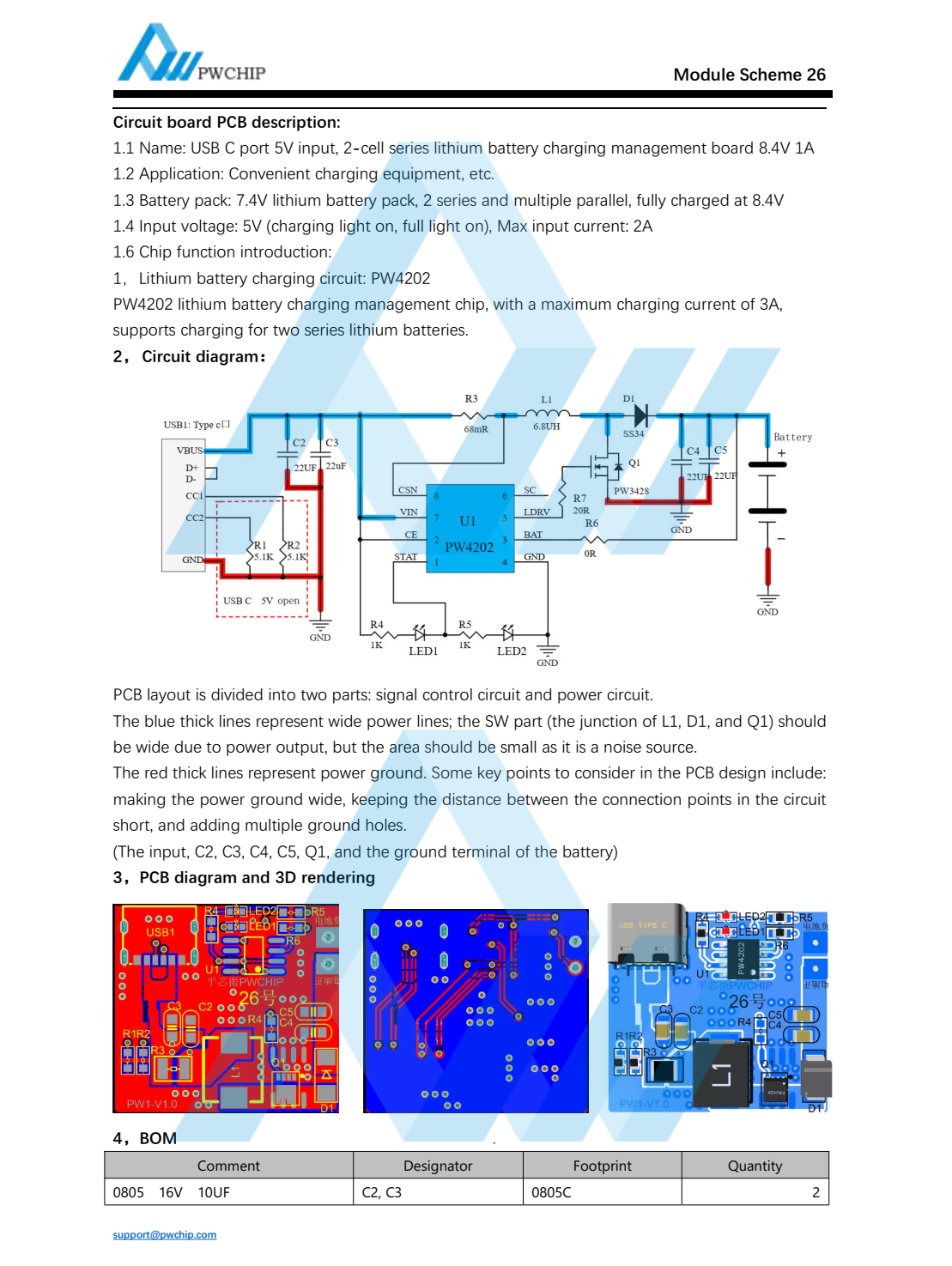 Summary : 1.1 Name: USB C port 5V input, 2-cell series lithium battery charging management board 8.4V 1A1.2 Application: Convenient charging equipment, etc.1.3 Battery pack: 7.4V lithium battery pack, 2 series and multiple parallel, fully charged at 8.4V1.4 Input voltage: 5V (charging light on, full light on), Max input current: 2A