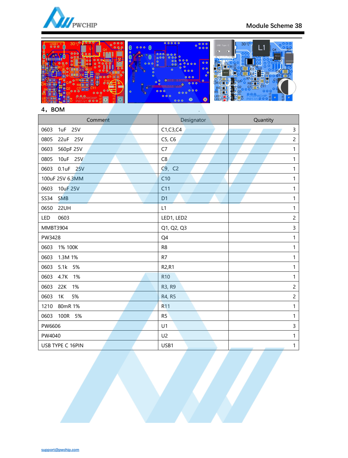 Charging board for four-series 16.8V lithium batteries supporting PD/QC fast charging protocol with high voltage input of 5V-9V-Module 38