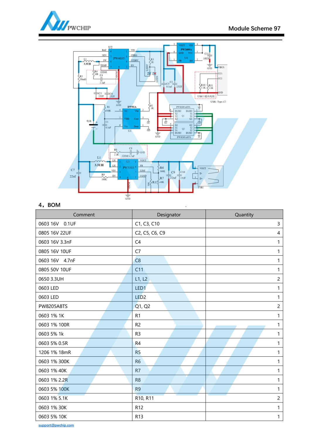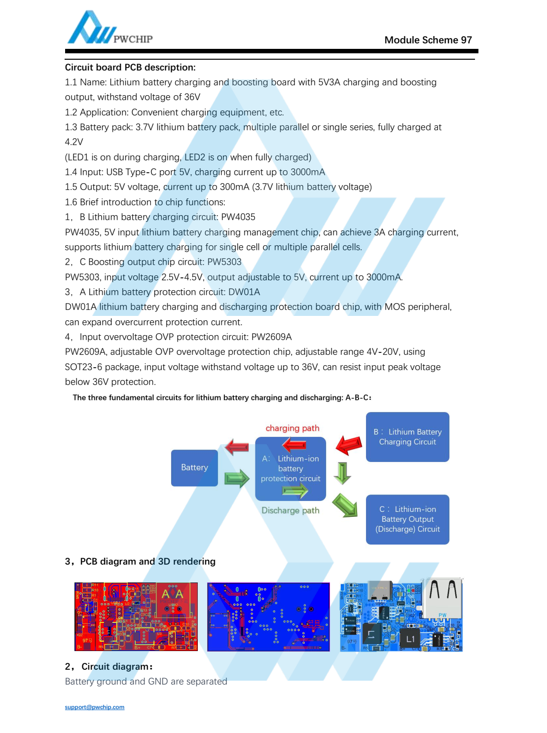 Summary : 1.1 Name: Lithium battery charging and boosting board with 5V3A charging and boostingoutput, withstand voltage of 36V1.2 Application: Convenient charging equipment, etc.1.3 Battery pack: 3.7V lithium battery pack, multiple parallel or single series, fully charged at4.2V(LED1 is on during charging, LED2 is on when fully charged)1.4 Input: USB Type-C port 5V, charging current up to 3000mA1.5 Output: 5V voltage, current up to 300mA (3.7V lithium battery voltage)