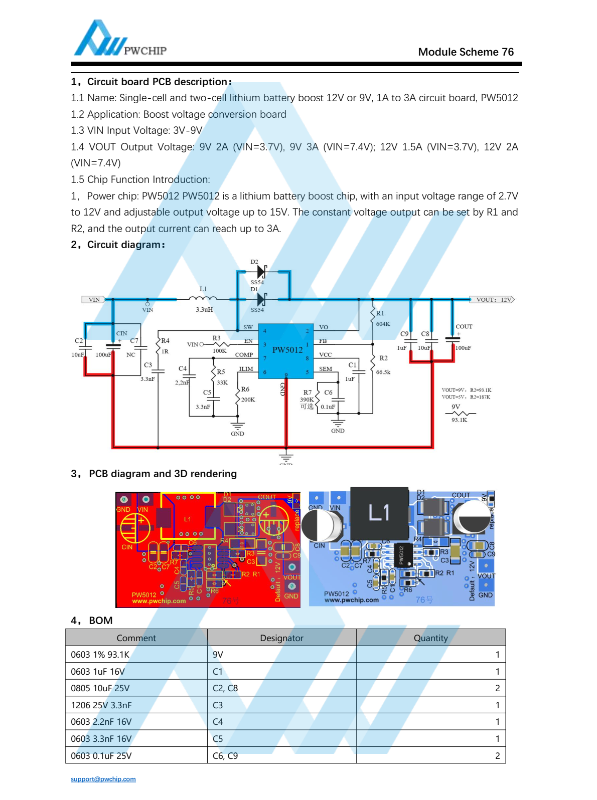 Single-cell and two-cell lithium battery boost 12V or 9V, 1A to 3A circuit board, PW5012-Module 76
