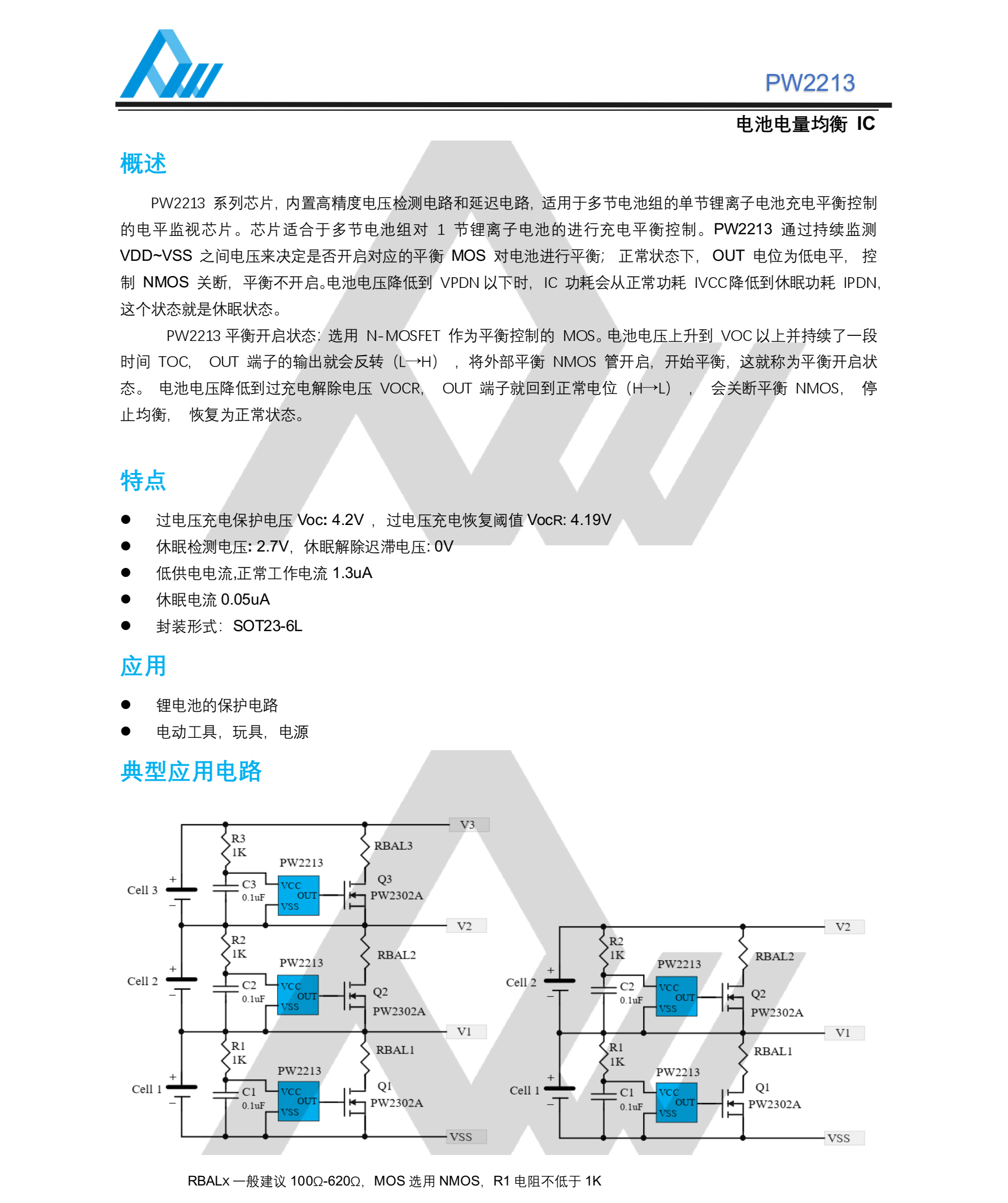 • Support Cell Lithium battery equalization chip