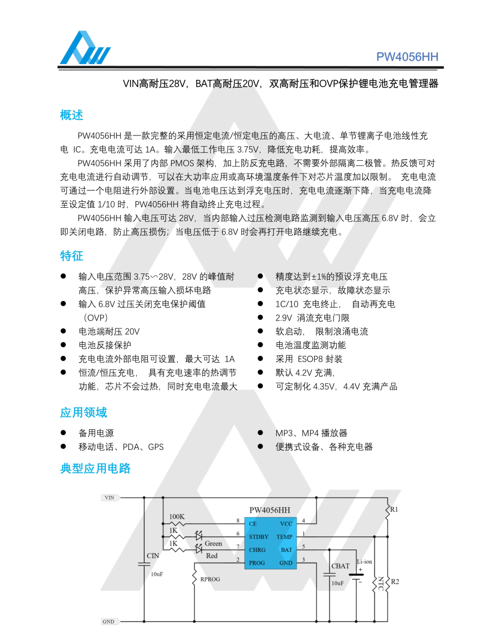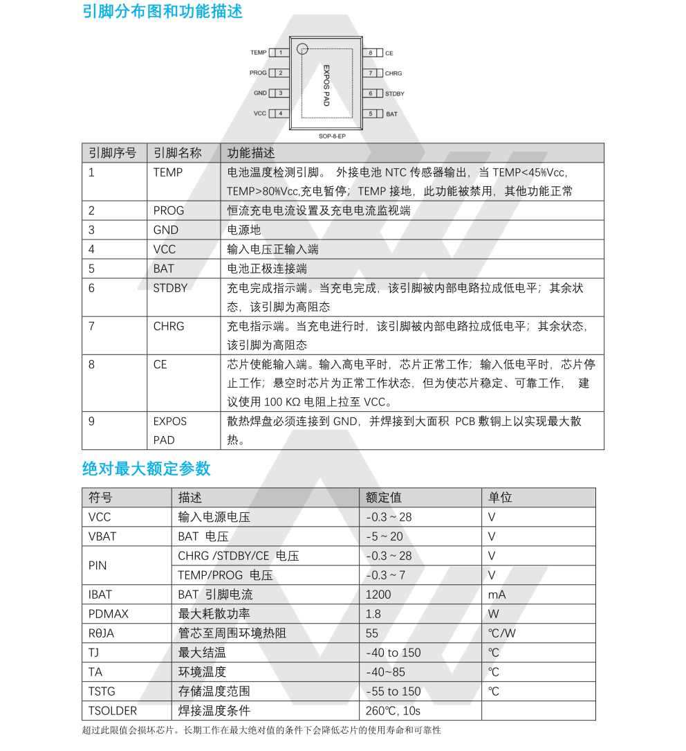 • Function OVP+Lithium battery charging management