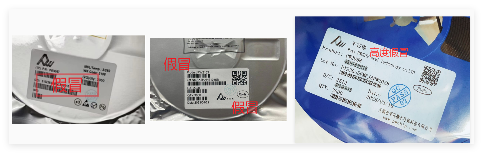 我们注意也有注意到有些客户因产品标签上型号名称同我们一样,误以为这些产品为我司产品。但是只是市场中某些公司被利益驱动,使用了与平芯微的IC型号的名称。 事实上,这些产品并非由我司生产或提供,由于他们采用了很多不同的产品来代替,工厂实际生产时造成不小影响。