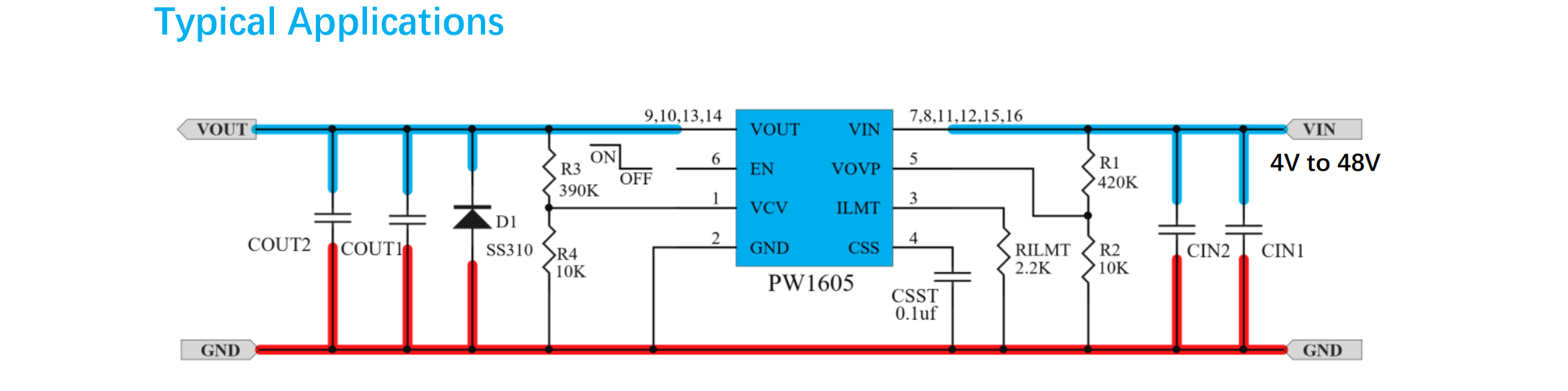PW1605,4V~48V输入范围,耐压60V,可调过压保护,可调限流芯片