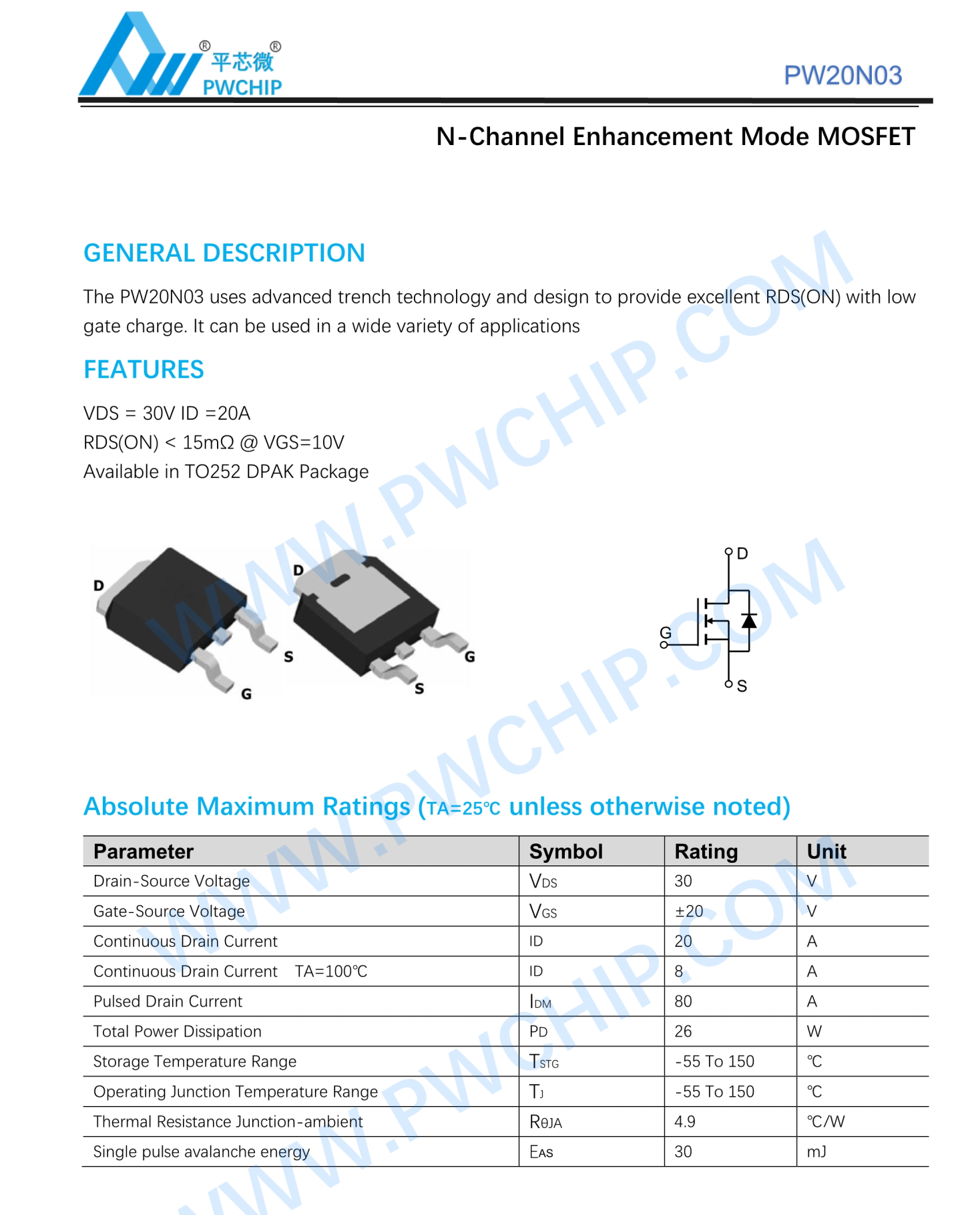 • 型号 PW20N03