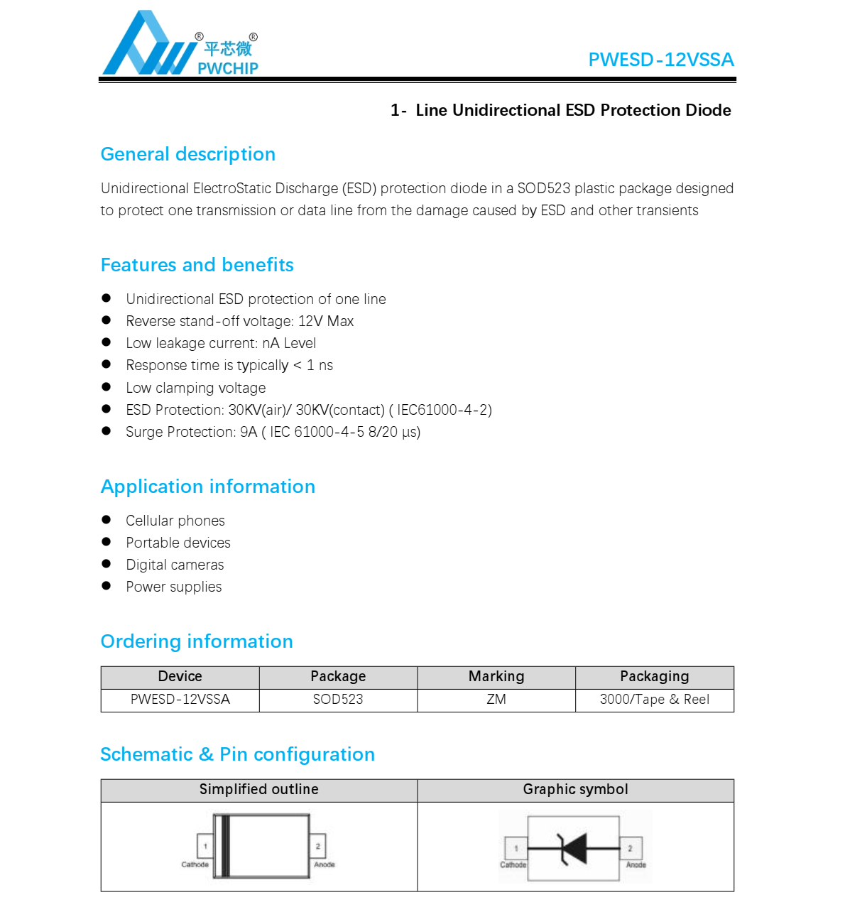 PWESD-12VSSA_ESD规格书_平芯微.pdf