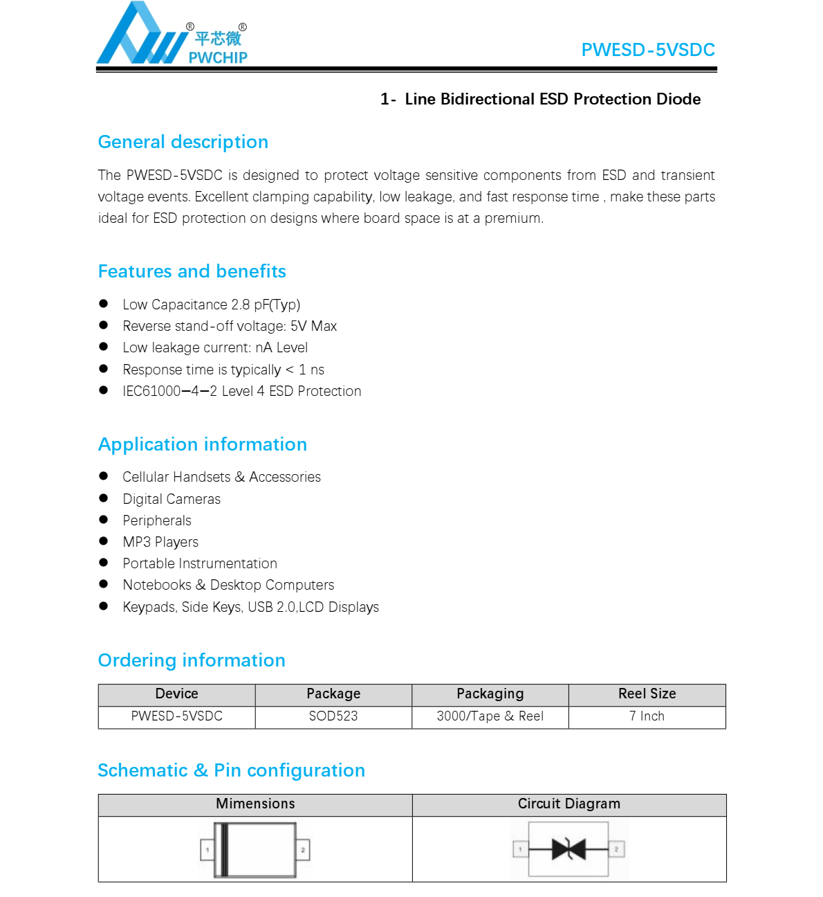 PWESD-5VSDC_ESD规格书_平芯微.pdf